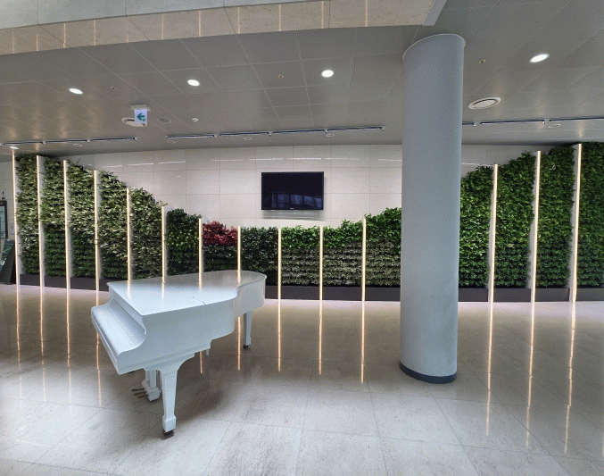 이번 실내정원은 수직정원 5개소, 수평정원 2개소 총 2,000㎡ 규모로 공기정화 및 관상 효과가 뛰어난 초화류 관음죽, 섬기린초 등 17종 7,135본의 실내 식물이 식재됐다.