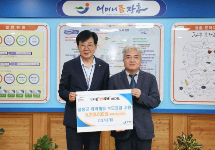 장성원 지사장은 “이번 지원을 통해 복지사각지대에 놓여있는 어려운 이웃들의 수도요금 부담이 경감되길 바라며, 앞으로도 장흥군과 협력해 장흥군민의 물복지를 위해 지속적으로 노력하겠다”고 밝혔다.