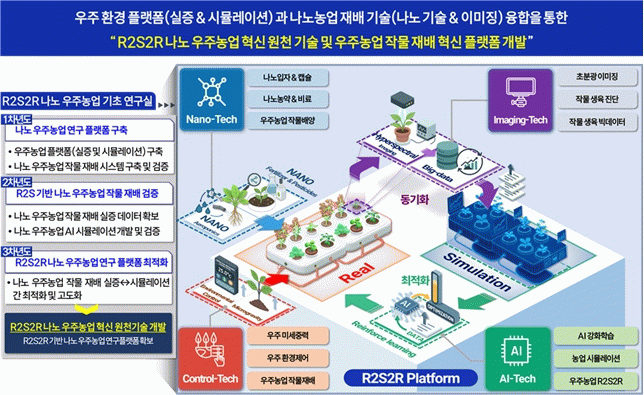 ‘나노 우주농업 기초연구실’은 나노기술, 인공지능(AI) 시뮬레이션, 우주환경 제어 및 모니터링 기술을 융합해, 극한의 우주 환경에서도 최소 자원으로 최대 작물 생산이 가능한 미래형 우주농업 원천기술을 개발하는 것을 목표로 한다.