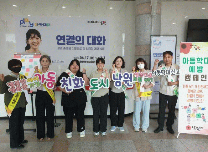 이번 캠페인은 play남원 아카데미와 연계하여 진행됐으며, 소통 전문가 박재연 강사의 강연과 시민 참여형 프로그램이 어우러져 아동학대 예방의 중요성을 효과적으로 알리는 계기가 됐다.