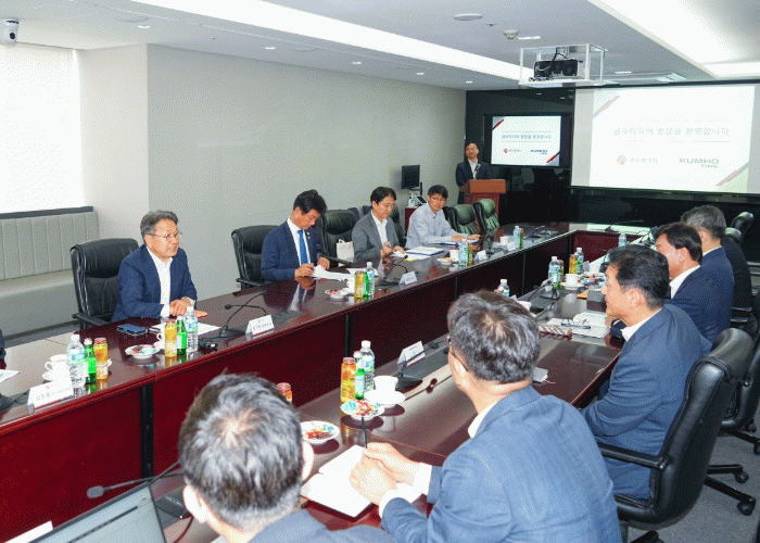 강기정 광주광역시장은 17일 서울 금호타이어 본사에서 정일택 대표이사 등 금호타이어 경영진과 면담했다. 이날 면담에는 박균택 국회의원도 함께 했다.