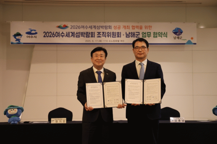 정기명 조직위원장은 “남해는 섬 관광과 해양 생태 자원을 풍부하게 갖춘 여수의 소중한 파트너”라며, “이번 협약을 통해 두 지역이 서로의 강점을 결합해 세계적인 해양관광 콘텐츠를 만들어가길 기대한다.”고 밝혔다.