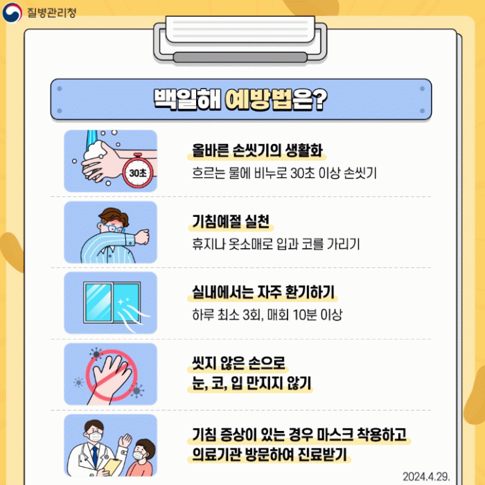 보건소는 단체생활이 많은 학생들의 감염병 확산을 방지하기 위해 손 씻기, 기침 예절, 마스크 착용, 실내 환기 등 기본적인 개인위생 수칙 준수를 강조하고 있다.