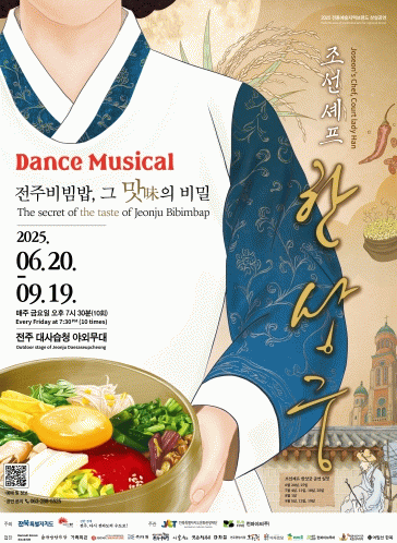 전주시는 오는 20일부터 오는 9월 19일까지 매주 금요일 오후 7시 30분, 전주대사습청 야외무대에서 ‘조선셰프 한상궁_전주비빔밥 그 맛의 비밀’ 공연을 선보인다고 18일 밝혔다.