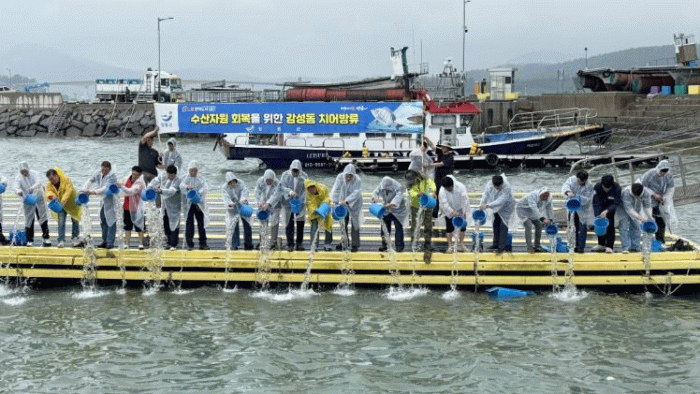 방류식에는 지역 어업인들과 해양 관련 단체 등 40여 명이 공동으로 참여했다.