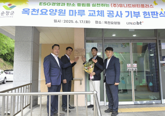 이날 옥천요양원은 생활어르신들의 고마운 마음을 담은 감사패를 ㈜유니드비티플러스에 전달했다. 또한 순창군은 지역 내 복지시설 환경개선에 크게 기여한 공로를 인정해 동 회사에 표창장을 수여했다.