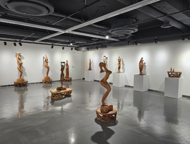 대표 작품인 여인상은 나이테가 드러나게 조각하면서 여인의 몸을 섬세하고 부드럽게 표현한 점이 인상적이다.