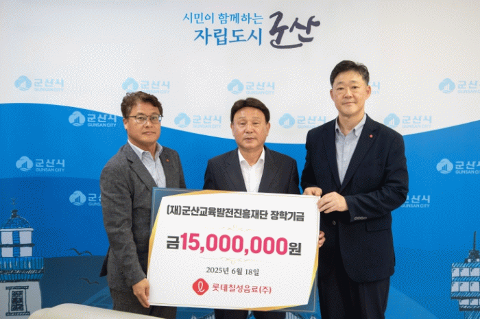 롯데칠성음료(주)는 ‘내 고장 사랑 캠페인’의 하나로 지난 1999년부터 매년 군산교육발전진흥재단에 장학금을 기탁하고 있어 지역 교육사업에 온기를 불어넣고 있다.