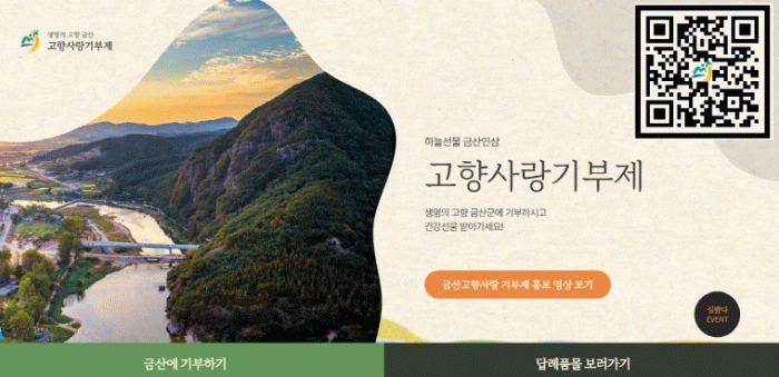 한편, 고향사랑기부는 주소지를 제외한 전국 어디서나 고향사랑e음, 위기브 등 온라인과 농협 등 오프라인에서 기부할 수 있다.