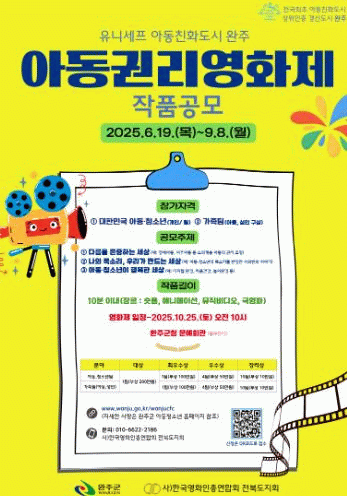 공모전에서 선정된 작품은 ㅇㅎ눈 10월 25일 완주군청 일원에서 열리는 아동권리영화제에 초청되어 상영될 예정이다.