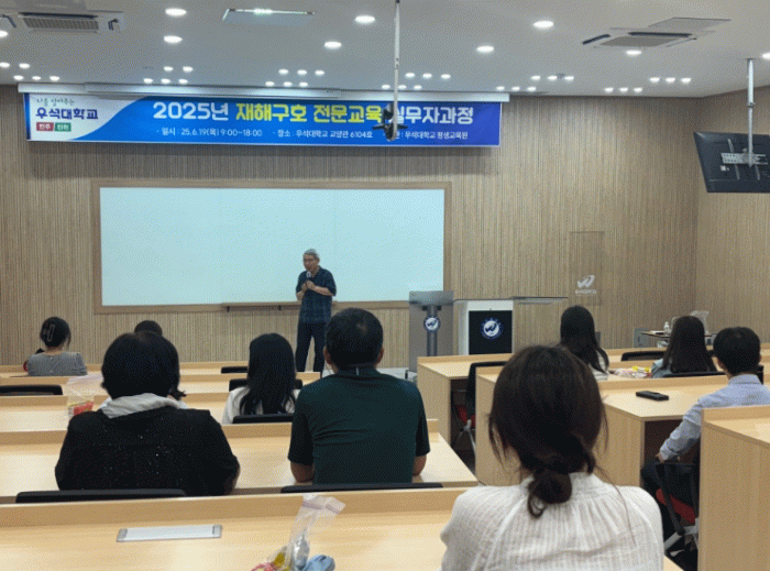 이재민 구호의 전문성과 현장 대응 능력 강화를 위한 법적·제도적 기반 아래 재해 발생 시 신속하고 체계적인 구호 활동을 수행하기 위하여 행정안전부로부터 전라권 전문인력양성 교육기관으로 지정된 우석대학교 평생교육원에서 ▲선진국 재해 구호 법령 및 사례 소개 ▲재난 유형별 실무자 임무 ▲재난 대응 가상 모의훈련 및 응급처치법 ▲집단구호 및 물품관리 등 실무 중심의 내용으로 진행됐다.
