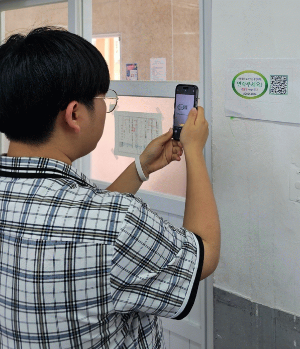 이날 학생들은 치매 환자의 옷 등에 부착하는 배회 인식표를 찾아 QR코드로 인적 사항을 확인하고 경찰서에 신고 접수를 하는 대처 방법을 익혔다.