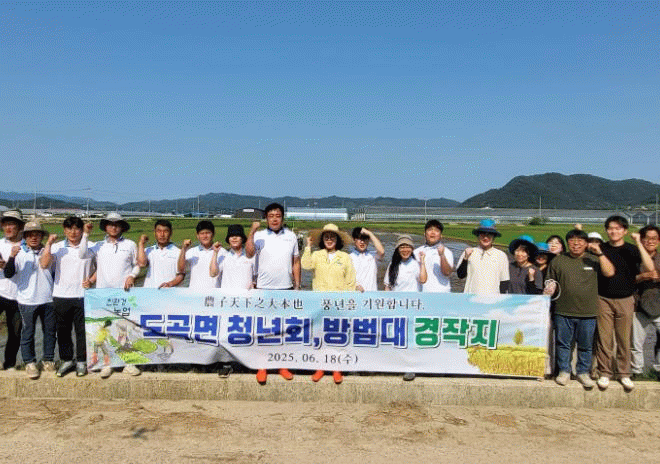 이날 행사는 도곡면 청년회·방범대원, 도곡면행정복지센터 직원 등 30여 명이 참여해 2,342㎡ 면적의 논에서 합동 모내기를 하며 구슬땀을 흘렸다.