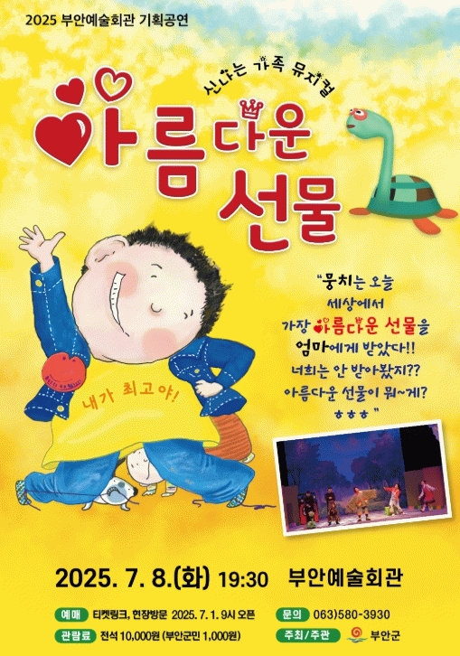 한편 공연은 전석 1만원으로 부안군민은 90% 할인해 1000원이며 좌석예매는 현장발권 및 티켓링크를 통해 할 수 있다.