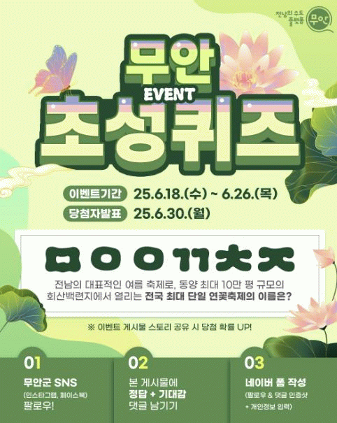 이번 이벤트는 축제 개막일인 26일까지 진행되며, 무안연꽃축제를 널리 알리고 방문객들의 참여를 유도하는 계기가 될 예정이다.