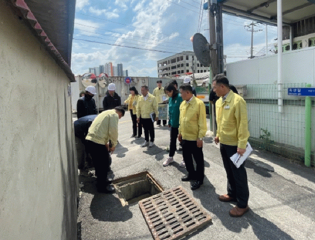 현장 점검은 ▸빗물받이 및 우수관 연결 상태, ▸맨홀 뚜껑 개폐 상태, ▸빗물펌프장 적정 운영 여부, ▸공공하수관로 내부 퇴적 토사·이물질 유무 등을 집중 확인했다.