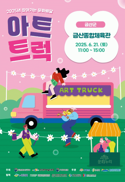 이번 행사는 문화체육관광부·한국문화예술위원회가 주최하고 충남문화관광재단·금산군이 주관하며 문화 소외 지역에 아트트럭이 찾아가 특별한 공연과 문화누리 예술시장(아트마켓) 등 문화예술 프로그램을 선보이도록 기획됐다.
