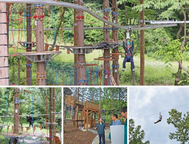 주요시설은 산림레포츠 체험지원센터와 트리탑전망대, 외줄이동시설(짚라인), 롤러코스터형 공중이동시설이며, 현재 마무리 공사가 진행 중이다.