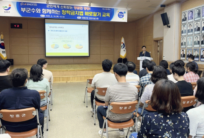 이날 교육은 이천영 장흥군 부군수가 직접 강사로 나서 청탁금지법의 핵심 내용을 중심으로 강의를 진행했다.