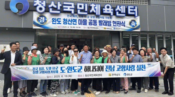 사업 시행 이후 처음으로 열린 이날 현판식은 전남고향사랑 실천의 출발을 알리며 전남도 및 완도군 기부자에 대한 감사의 마음을 전하고, 고향사랑의 관심과 참여를 높이기 위해 진행됐다.