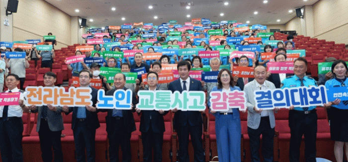행사는 전남도 교통안전문화 확산에 기여한 유공자 표창, 생성형 AI를 활용한 노인교통안전 캠페인송 제작발표, 11개 협업기관장이 참여한 교통안전 퍼포먼스, 전남도 노인 교통사고 감축방안 주제 전남경찰청 이준희 경위가 강연 등으로 진행됐다.