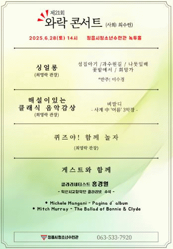 최영락 청소년수련관 관장은 “이번 콘서트는 청소년과 시민 모두가 클래식이라는 장르를 보다 친근하게 느끼고 음악의 매력을 나눌 수 있는 기회가 될 것”이라며 많은 참여를 당부했다.