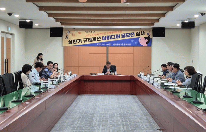 23일 완주군은 최근 2025년 완주군 규제개혁위원회를 열고, 상반기 규제개선 아이디어 공모전에서 1차 심사를 통과한 5건에 대한 심의를 진행했다고 밝혔다.