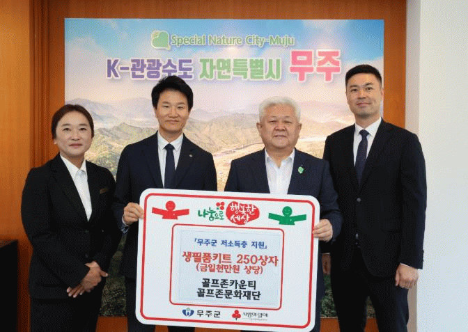 이날 무주군이 기탁받은 물품은 지역 내 저소득 가정 250세대에 전달될 예정이다. (재)골프존 문화재단과 골프존 카운티에서는 지난 2022년 2월에도 무주군에 1천5백만 원 상당의 생필품 키트 350상자를 전달한 바 있다.