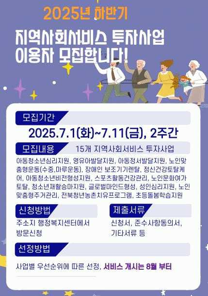 이용자 선정은 나이와 소득 기준, 재판정 여부 등 서비스별 기준에 따라 이뤄지며 선정 결과는 7월 말 개별 통보한다.