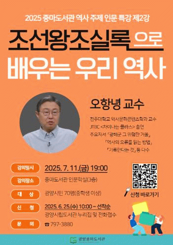 이번 특강은 '2025년 중마도서관 역사 주제 인문 특강'의 두 번째 강연으로, 지역 시민들의 역사 이해를 돕고 역사 인문학에 대한 관심을 높이기 위해 마련됐다.