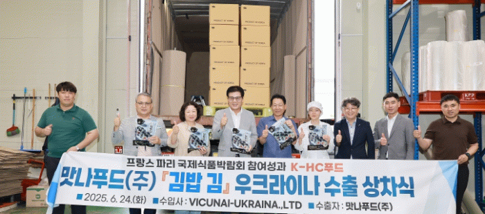 함평군은 우크라이나 유통업체 ‘VICUNAI-UKRAINA. LTD’와 김밥김 16만 불 수출 계약을 체결하고, 24일 상차식을 진행했다고 밝혔다.