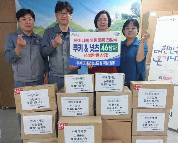 ㈜세아제강 순천공장은 지난해 2,170만원 상당의 쿠키를 순천시를 통해 지역아동센터, SOS어린이마을 등 아동복지시설에 기부했으며, 2025년 1분기 시리얼세트에 이어 꾸준히 물품을 후원하고 있다.