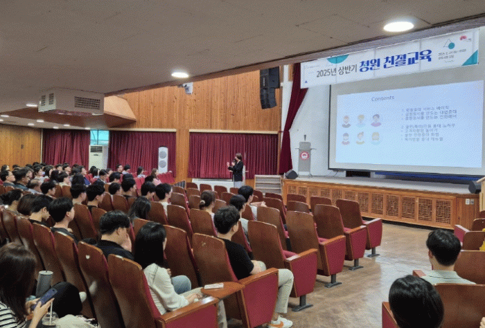 시는 24일 시청 강당에서 전주시와 시설관리공단의 신규임용자와 대민업무 담당 직원 등 200여 명이 참석한 가운데 ‘2025년 상반기 청원 친절교육’을 실시했다.
