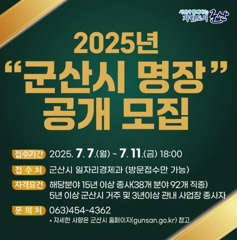 더욱 자세한 사항은 군산시 누리집 '고시공고’를 참고하거나 일자리경제과로 문의하면 된다.