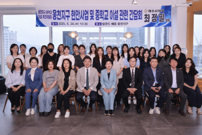 이번 간담회는 최정필 여수시의회 의원과 웅천지구 중학교 이설 추진위원회(위원장 황필환)가 공동 주최했으며, 여수교육지원청과 여수시 관계자, 학부모 등 약 50여 명이 참석했다.