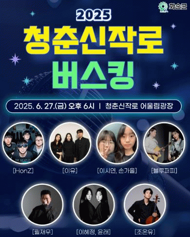 청춘신작로 버스킹은 오는 10월까지 개최되며, 화순군은 청춘신작로 일대를 일상 속 문화공간이자 세대를 잇는 열린 무대로 만들어갈 계획이다.