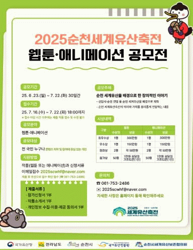 자세한 일정과 공모 내용은 순천세계유산축전 공식 누리집에서 확인할 수 있다.