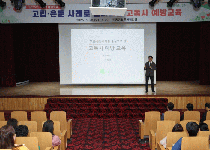 무주군은 고독사 예방을 위해 이번 교육 외에도 고독사 위험군을 대상 현장 중심의 예방 활동도 꾸준히 이어가고 있다. 건강음료 배달을 통한 안부 확인 서비스와 위생 환경 개선을 위한 주택 청소 사업 등도 호응을 얻고 있다.