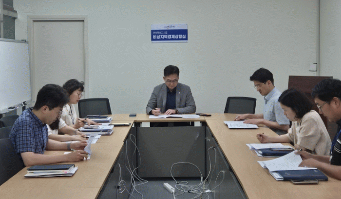 전북도 비상지역경제 상황실은 도청 2층 예산심의실에 설치되며, 기획조정실장이 상황실장을 맡고 예산과·정책기획관·일자리민생경제과 등 관련 부서가 협업해 운영한다.