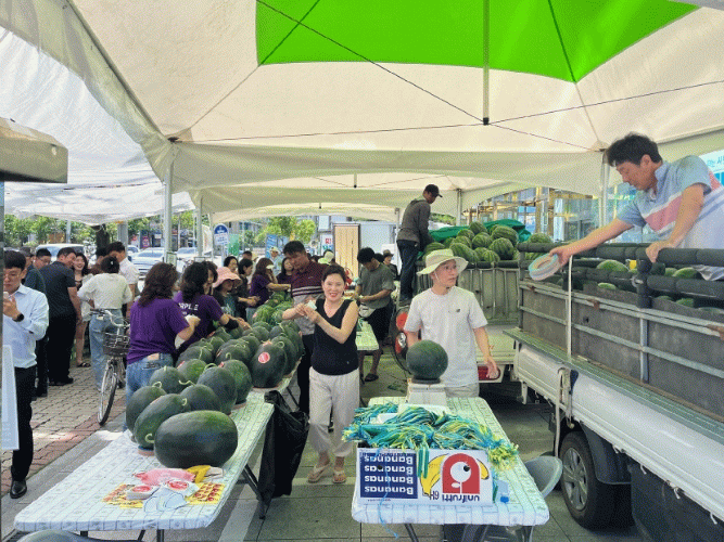 현장에서는 진월면에서 출하된 흑수박과 일반수박이 시중가보다 저렴하게 판매되며, 수박 시식 행사도 함께 마련돼 시민들이 직접 맛을 보고 구매할 수 있다.