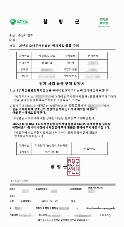 또한, 최근 농약사에 공문을 위조해 물품을 요구하는 피싱 시도까지 포착되면서 각별한 주의가 요구된다. 농약사가 군 공식 공문서와 달라 군청에 문의한 결과 위조 공문이라는 사실이 밝혀졌다.