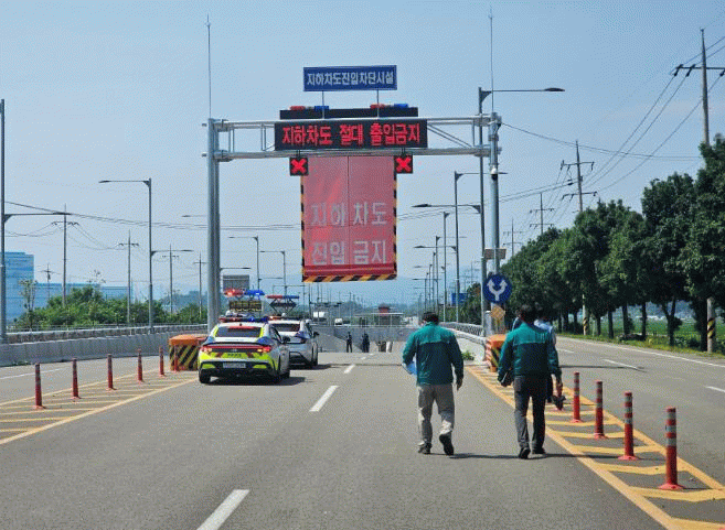 주요 훈련 내용으로는 지하차도 진입차단시설 운영, 차량 우회 유도, 배수펌프 가동 점검, 차량 고립 상황을 가정한 인명구조 및 통제, 상황 전파와 임무 숙지 등이 포함됐다.