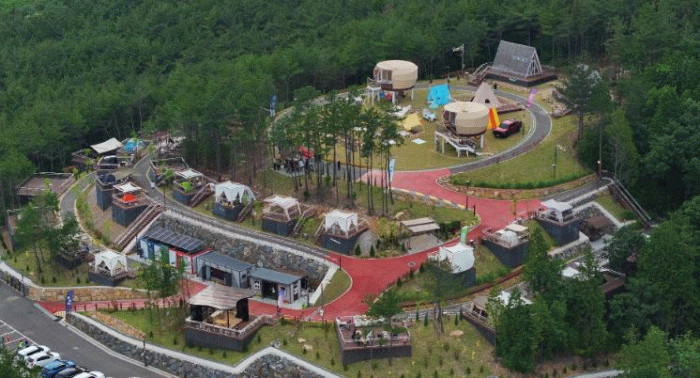 가족형 어린이 테마파크(가칭) 내 둥지를 튼 숲속야영장은 야영데크 28면, 트리하우스 5동 규모로 웰컴센터, 취사대, 샤워장, 무료 주차장 등 다양한 편의시설을 갖췄다.