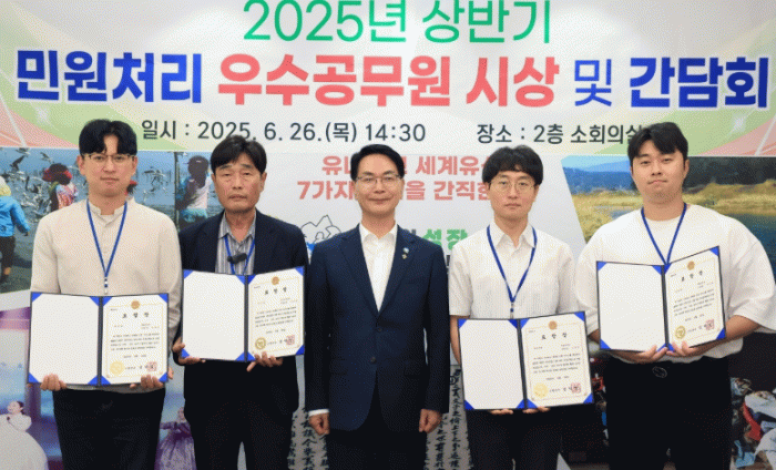 2025년 상반기 민원처리 우수공무원은 ‘국민신문고 분야’ 5명, ‘민원처리 마일리지 분야’ 5명을 선정하여 군수 표창을 수여하고, 부상으로 고창사랑상품권을 제공했다.