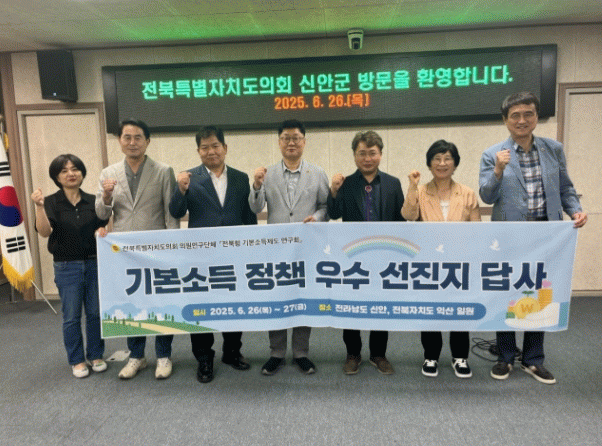 전북형 기본소득제도 연구회 장연국 대표위원은 “이번 신안군 방문을 통해 기본소득이 단순한 현금 지원을 넘어 지역의 자원과 주민 참여를 결합한 지속가능한 정책이 될 수 있음을 확인했다”며 “전북의 현실에 맞는 기본소득 모델을 마련해 도민의 삶을 실질적으로 개선할 수 있는 정책 기반을 만들어가겠다”고 말했다.