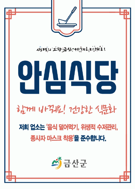 군 관계자는 “주민들께서 안심하고 이용할 수 있는 음식점을 늘리기 위해 안심식당을 지속적으로 확대할 예정”이라며 “지역 내 음식점의 관심과 참여를 바란다”고 말했다.