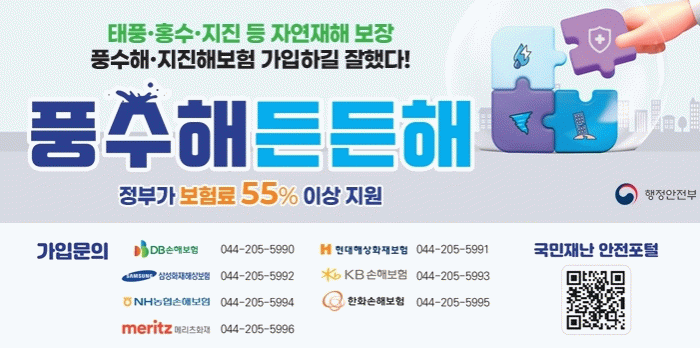 풍수해·지진재해보험은 태풍, 홍수, 지진 등 각종 자연재해로 인한 재산 피해를 보장하는 정책보험으로, 정부와 정읍시가 보험료의 55% 이상을 지원한다.