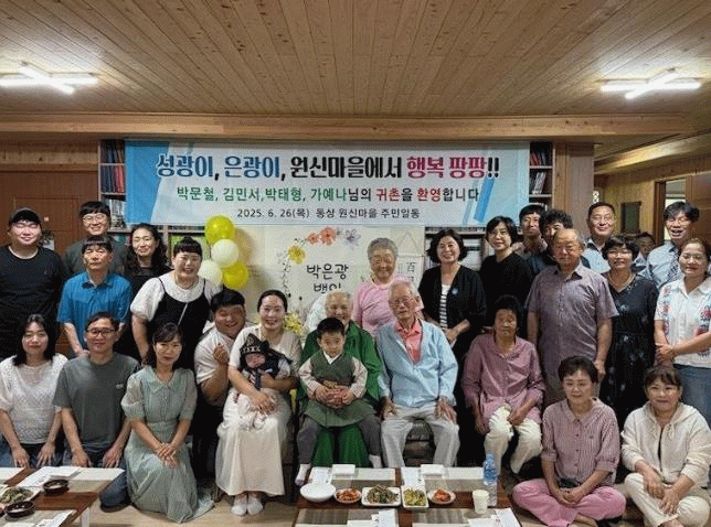 원신마을 주민들은 귀촌 가족들을 환영하고, 백일을 맞은 은광 군을 축하하는 시간을 가졌다.
