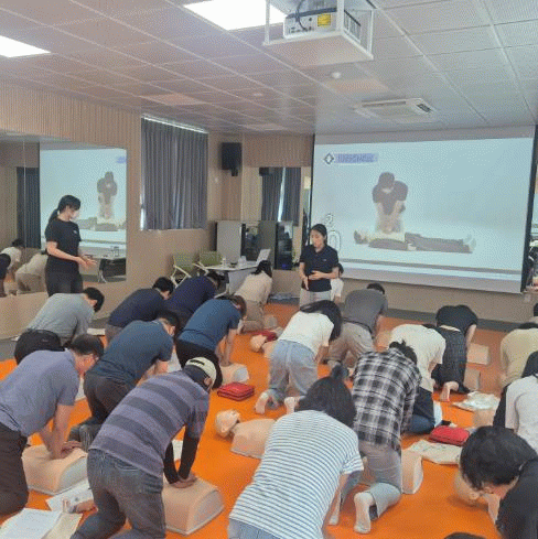 이번 교육은 원광대학교병원 권역응급의료센터 하태욱 교수의 강의로, 심폐소생술 및 자동심장충격기 사용법에 대한 실습 위주의 교육으로, 심폐소생술의 중요성과 필요성이 심화함에 따라 응급구호 역량과 위기 상황 대처 능력을 향상하기 위해 실시됐다.