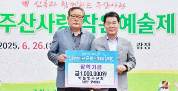 근농장학금 기부에 앞서 자체적으로도 주산면 초‧중‧고 학생 3명에게 장학금 100만원을 기부하는 등 지역 인재 육성에도 많은 관심을 갖고 참여하고 있다.